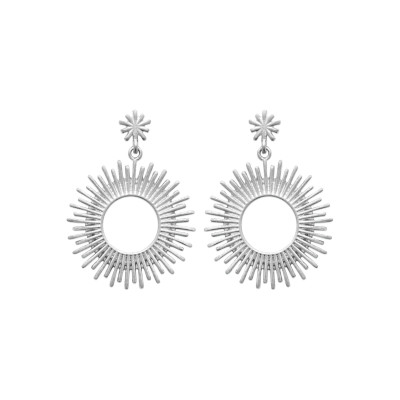 Boucles d'oreilles pendantes soleils femme Argent 925 rhodié 25mm x 12mm tiges