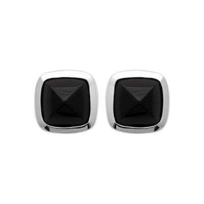 Boucles puces d'oreilles Agate noire carrée 11 mm femme Argent 925 rhodié clous