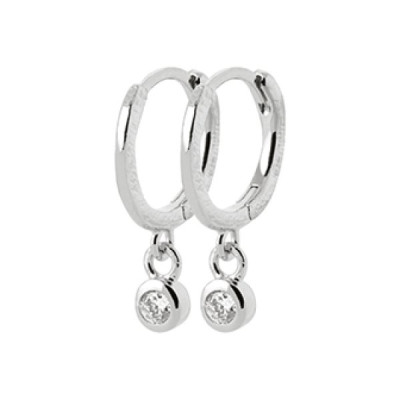 Petites Créoles Argent 925 rhodié Zircon rond pendant 18mm x 10mm x 4mm