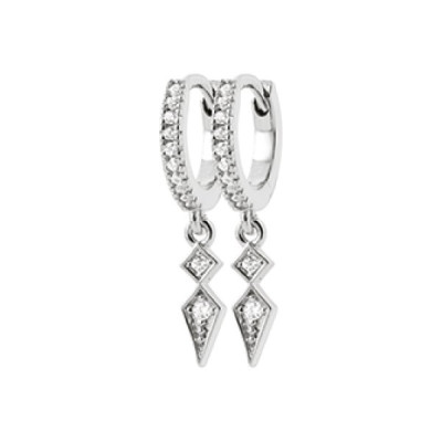 Petites Créoles Argent 925 rhodié losange pendant Zirconium 19mm x 10mm