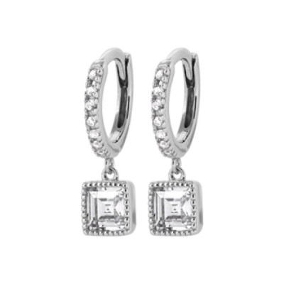 Petites Créoles Argent 925 rhodié Zircon carré serti pendant 18mm x 12mm