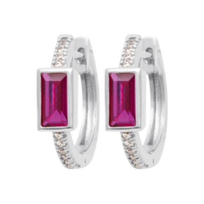 Créoles Argent 925 rhodié et Zirconium rectangle fuschia 15mm x 17mm