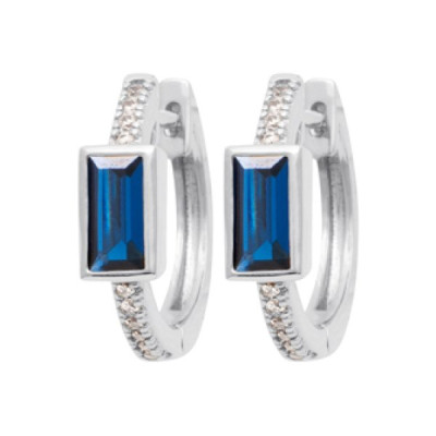 Créoles Argent 925 rhodié et Zirconium rectangle bleu 15mm x 17mm