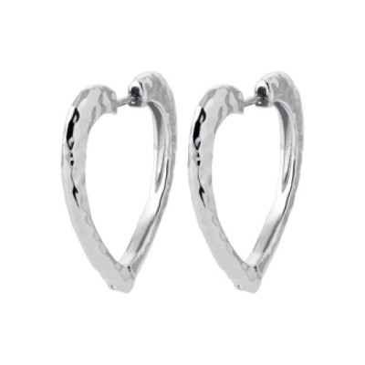 Boucles d'oreilles Créoles coeur martelé Argent 925 rhodié 23mm x 22mm
