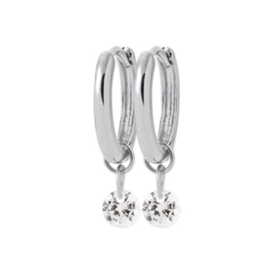 Petites Créoles Argent rhodié Zircon pendant blanc 19mm x 13mm x 2mm